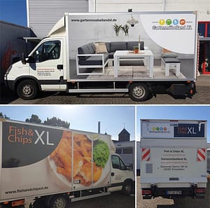 Belettering bedrijfswagen – ook over de grens! Tuinmeubelen shoppen en een heerlijk visje eten. Het kan allemaal net over de grens in Emsdetten bij Gartenmöbelland