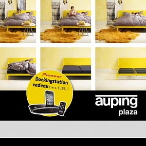 De door ons gemaakte thematische en actiematige huis-aan-huisfolders van Auping verschijnen in grote oplagen, in zowel een Nederlandse versie als een Nederlands-Franse variant voor de